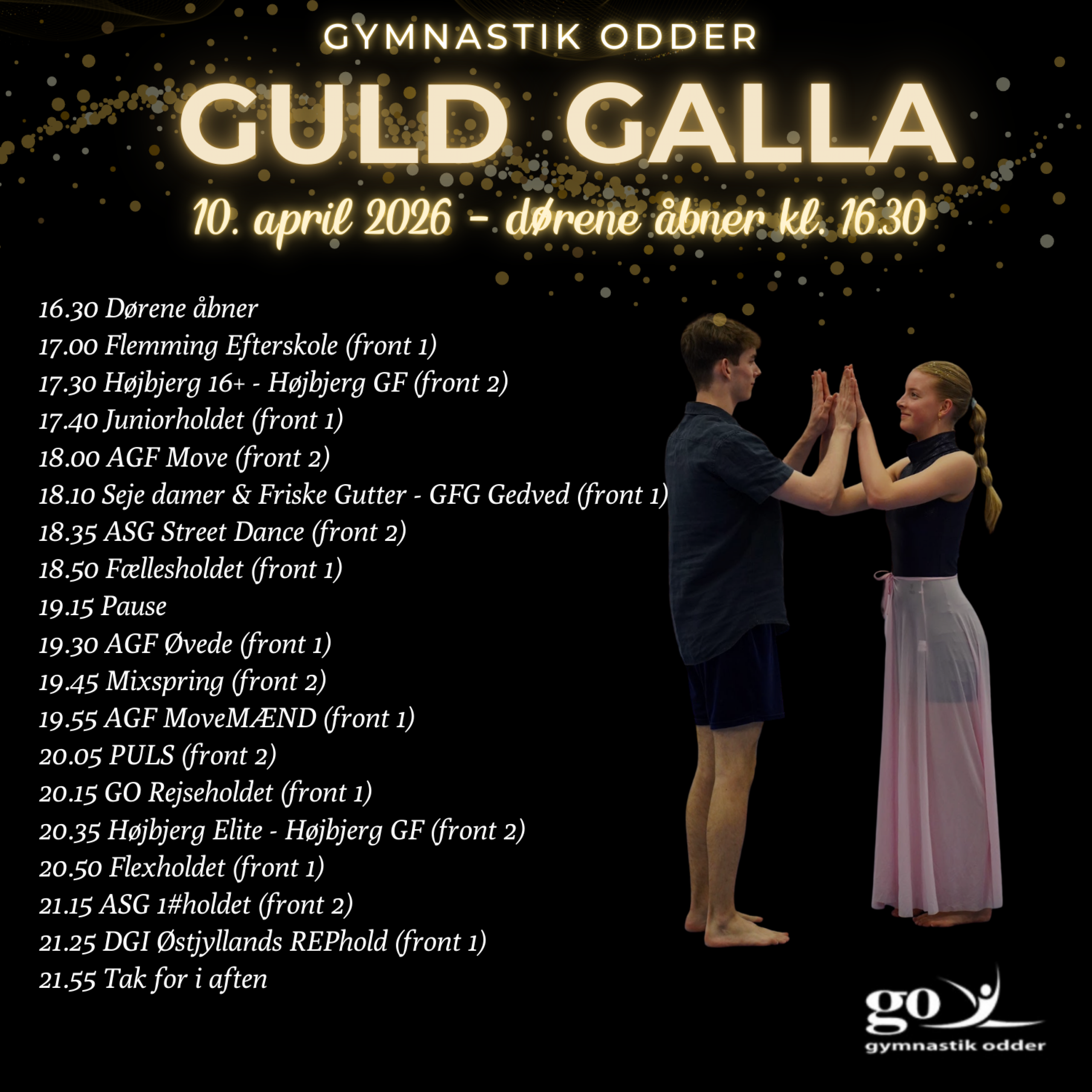 Vi melder klar med et lækkert program til årets Guld Galla - kom og nyd en aften med showlys og en stemning, der er helt i top!
